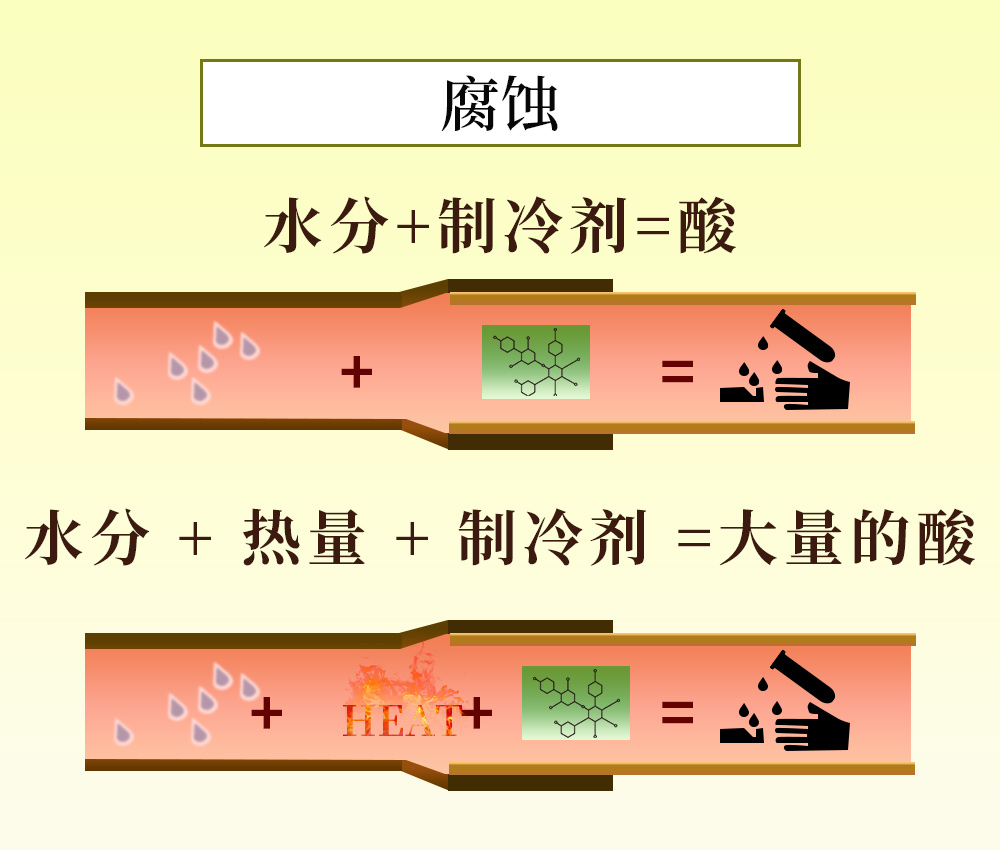 2.冷冻机油和制冷剂含有超过允许量的水分;