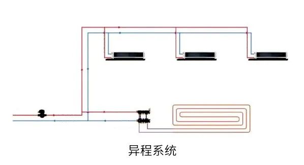 需要注意的是,同程系统和异程系统在热泵系统的工作原理上有所不同,选择哪种系统取决于具体的应用需求和系统设计要求。在实际应用中,需要根据建筑物的热负荷、环境条件和经济性等因素进行综合考虑,选择适合的系统工作方式。