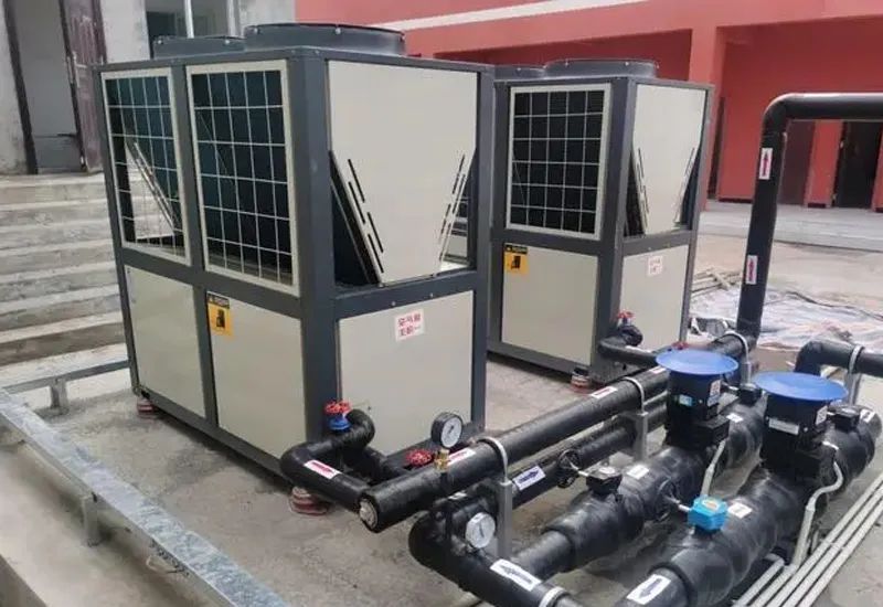 考虑到空气能热泵为了保证换热效率,铜管路占比较大,然后在生产的时候冷煤的铜管和机器外壳离得比较近,运输或者过程里,可能会碰撞产生形变,导致结果使用阶段整体出现共振的砰砰高频声音,就会引发不正常的噪音,那么在安装的时候,如果距外壳特别近,则要拉开距离,让铜管与外壳相距大于1公分以上,确保在后期不会出现铜管碰外壳发出异响