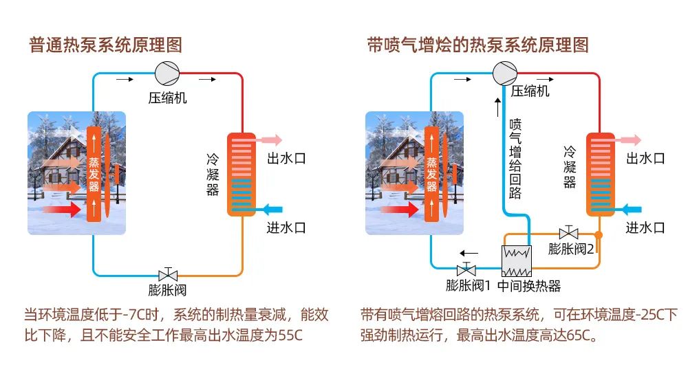 1.结霜问题。区域性特征明显,因其对外界的温度依赖程度过大,其正常工作环境温度在-5度到-40度之间,故基本使用于华东、华南等长江以南地区。但现在超低温空气源热泵技术也在不断发展,利用喷气增焓压缩机技术,有望使得空气能热泵也在北方低温地区广泛推广使用。