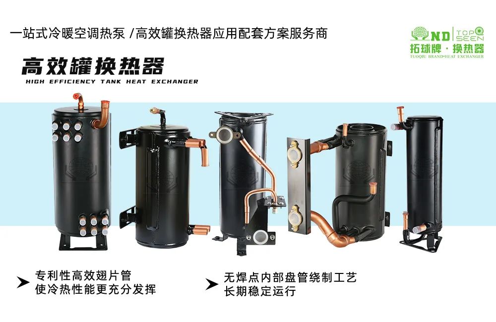 2.高效节能。水源热泵使用的电能本身为一种清洁的能源,但在发电时,消耗一次能源并导致污染物和二氧化碳温室气体的排放。设计良好的水源热泵机组,与空气源热泵相比,相当于减少30%以上的电力消耗,与电供暖相比,相当于减少70%以上的电力消耗。所以,水源热泵在节能的同时还减少和降低了发电时一次能源消耗过程中产生的污染排放和温室效应。(拓球牌高效罐换热器,体积小换热效率高,专利性高效翅片管,使冷热性能更充分发挥)