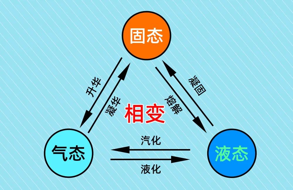 物质从一种相转变为另一种相的过程。物质系统中物理、化学性质完全相同,与其他部分具有明显分界面的均匀部分称为相,与固、液、气三态对应,物质有固相、液相、气相。