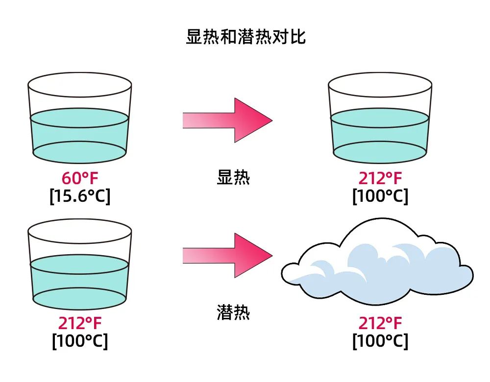 潜热: 物质在吸收或放出热量的过程中,其形态发生变化,但温度不发生变化,这种热量无法用温度计测量出来,人体也无法感觉到,但可通过实验计算出来,这种热量就称为潜热。
