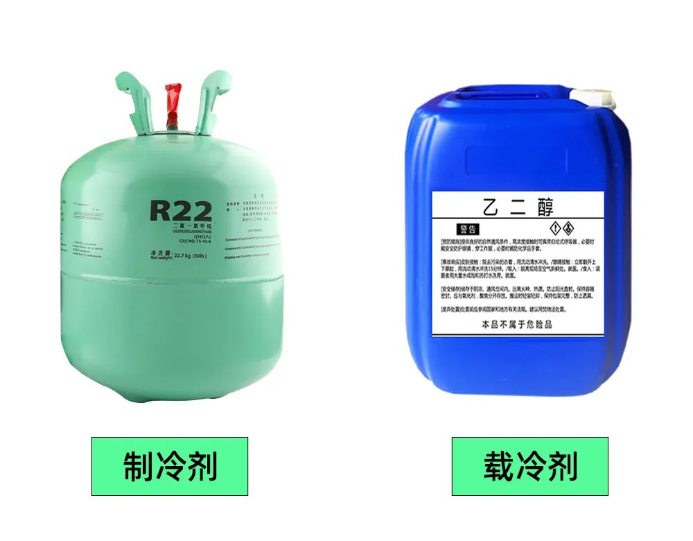 载冷剂:是在间接制冷系统中用来传送冷量的中间介质。常用的载冷剂:水、盐水、乙二醇水溶液