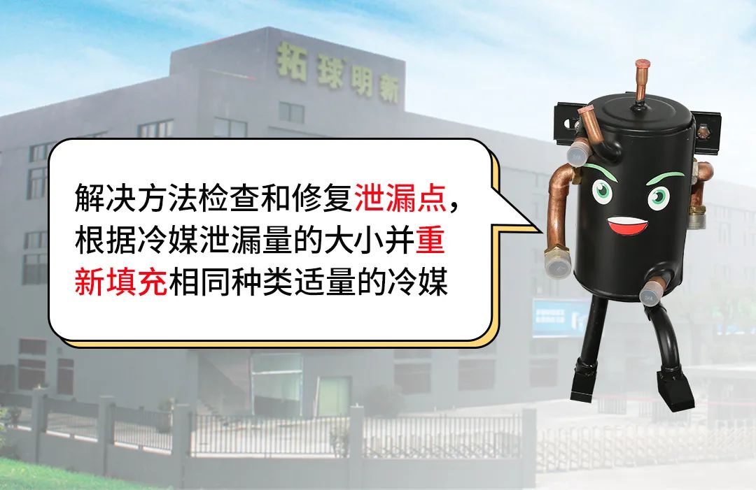 检查热泵机组中出现泄漏冷媒的地方,查看冷媒泄漏程度,发现泄漏根源处,冷媒泄漏可能导致热泵的制冷或供暖效果下降。