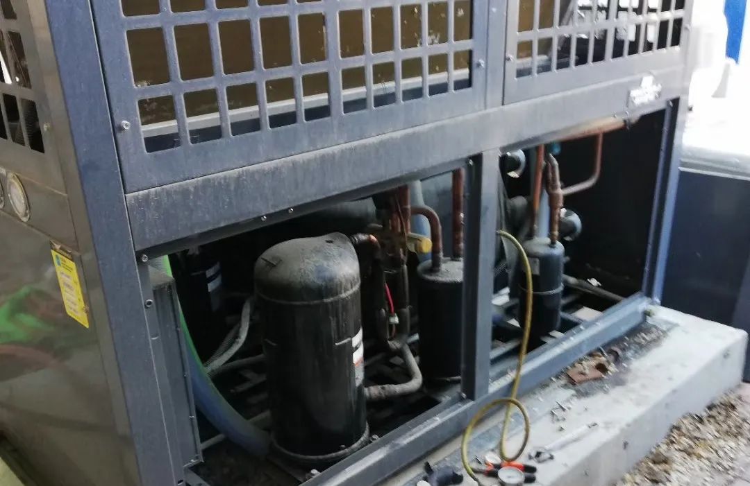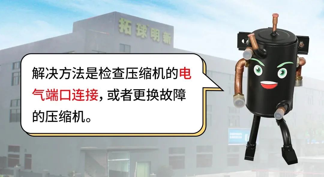压缩机是空气能热泵的关键组件,检查机组线路,接线均牢固可靠,检测线路电压,打开压缩机接线盒,检查线路如果发现压缩机接线端脱落,需要重新整理后,固定接线端后运行正常,让热泵机组正常工作。
