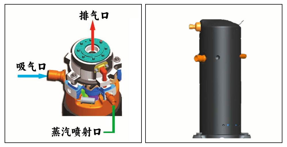 冷暖型空气能热泵采用“喷气增焓”压缩机,制热时主要设计工况都在0℃以下。在采暖方面,末端主要搭配地暖、散热器、风机盘管等。