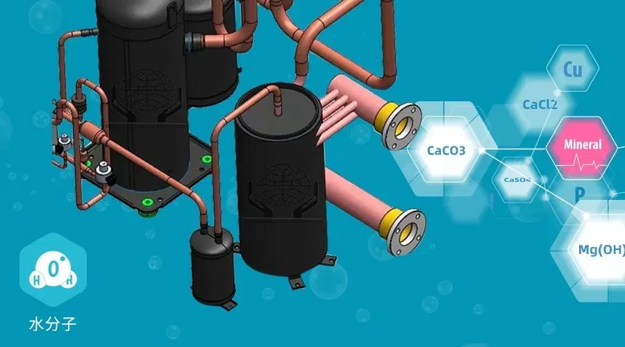 --水垢常见原因与解决--由于各地水质不同,有些水质较差硬度较高的地区,容易产生水垢,通常都会建议加入水处理的装置,如不安装水处理装置的话,可能会导致机组使用2-3个月产生结垢,严重的不到一个月就会结水垢,换热器作为热泵机组中的重要部件,同样也是形成"水垢"的重灾...